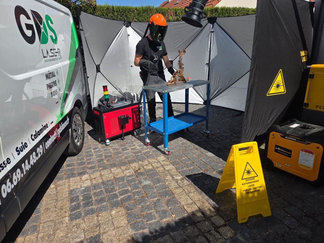 GDS Laser est une entreprise du Loiret spécialisée dans le décapage laser à domicile, sur Métal, Pierre, Bois… Nous proposons une solution plus respectueuse de l’environnement, sans déchets, garantissant un résultat propre et précis.